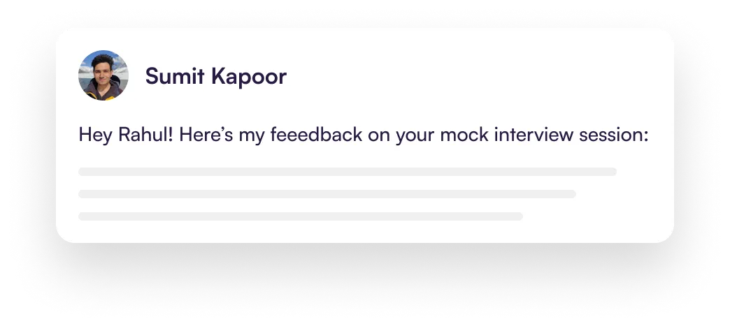 Work with a mentor (senior developers from top tech companies) who closely looks at your progress, gives you personalized feedback and helps you fill gaps in your knowledge.